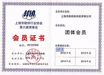 • 上海市軟件行業協會第六屆理事會會員證書