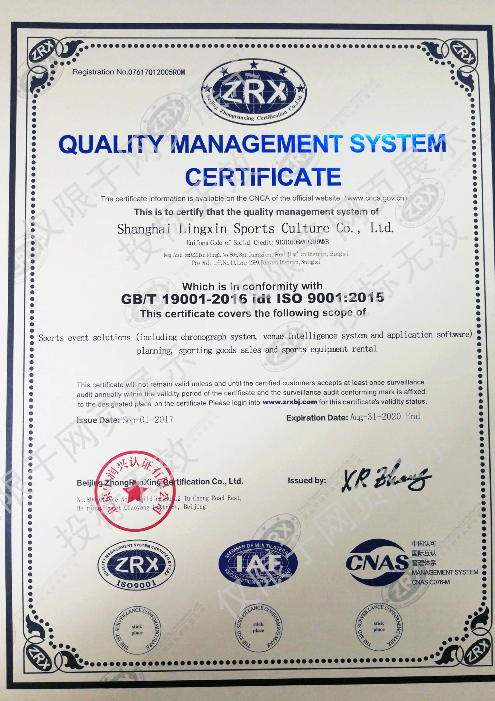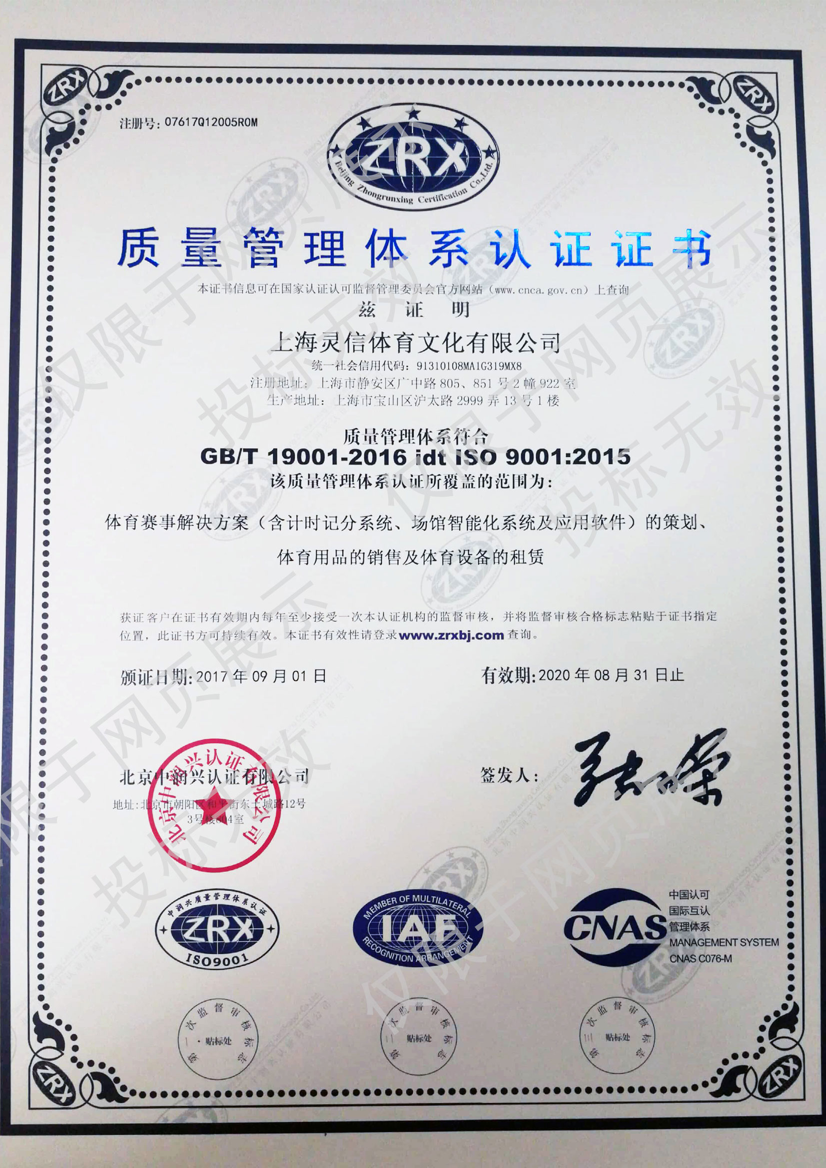 • 靈信體育ISO9001證書(中文)
