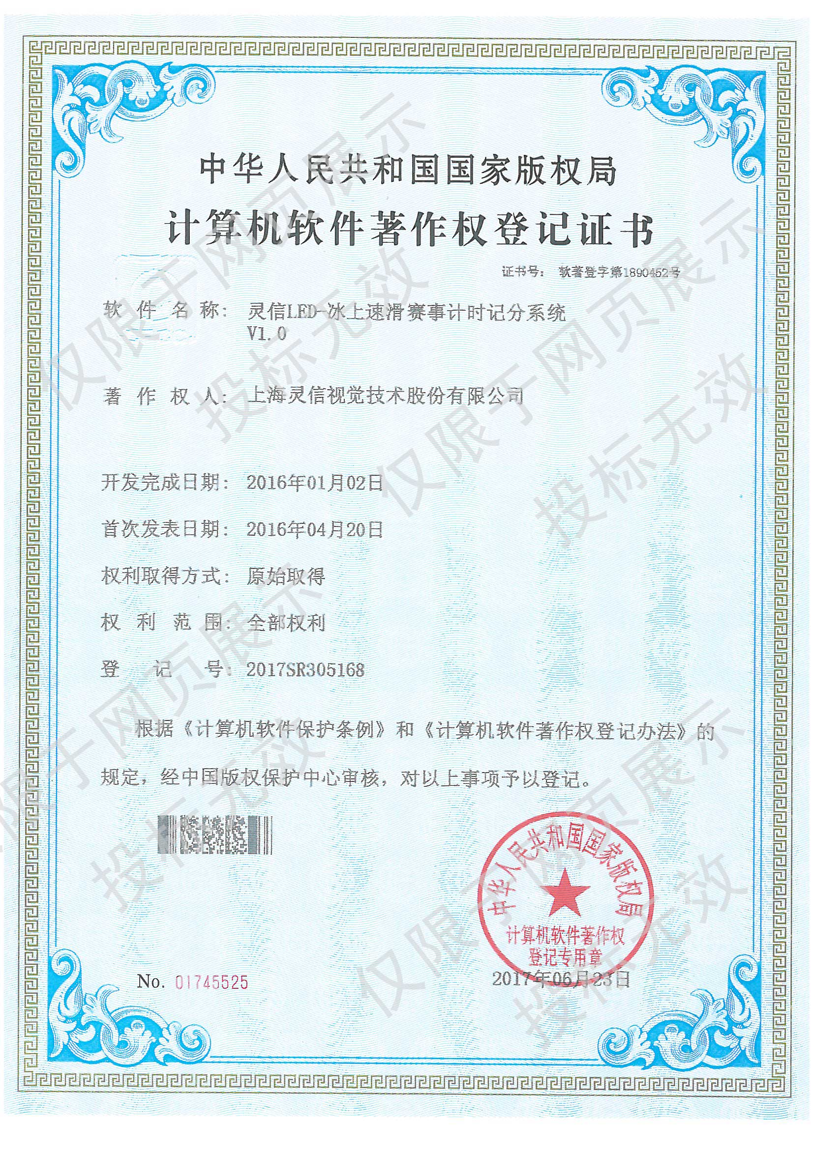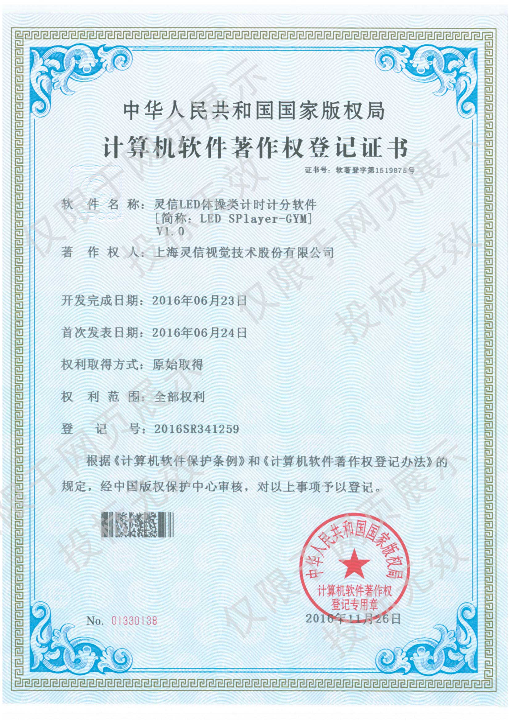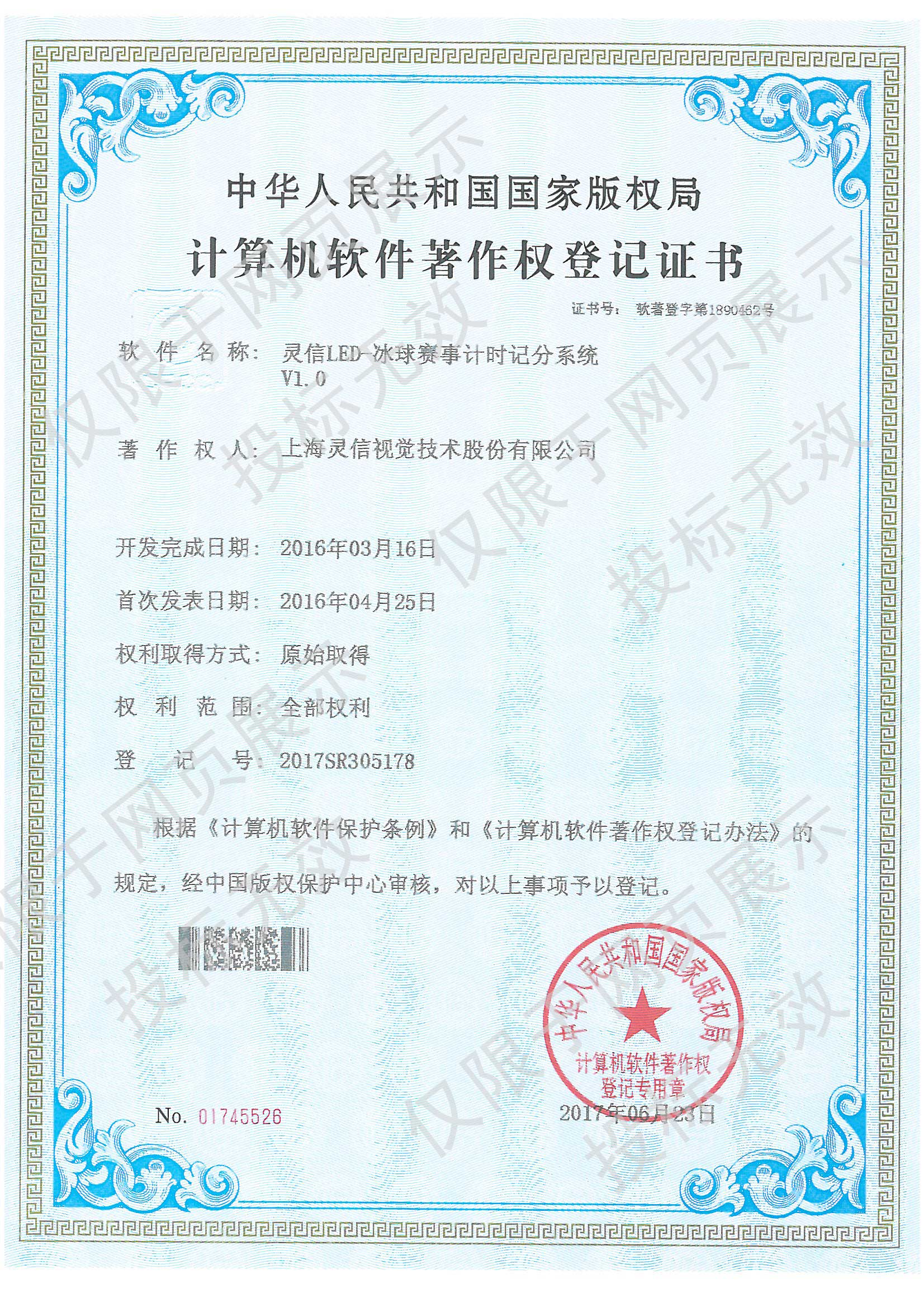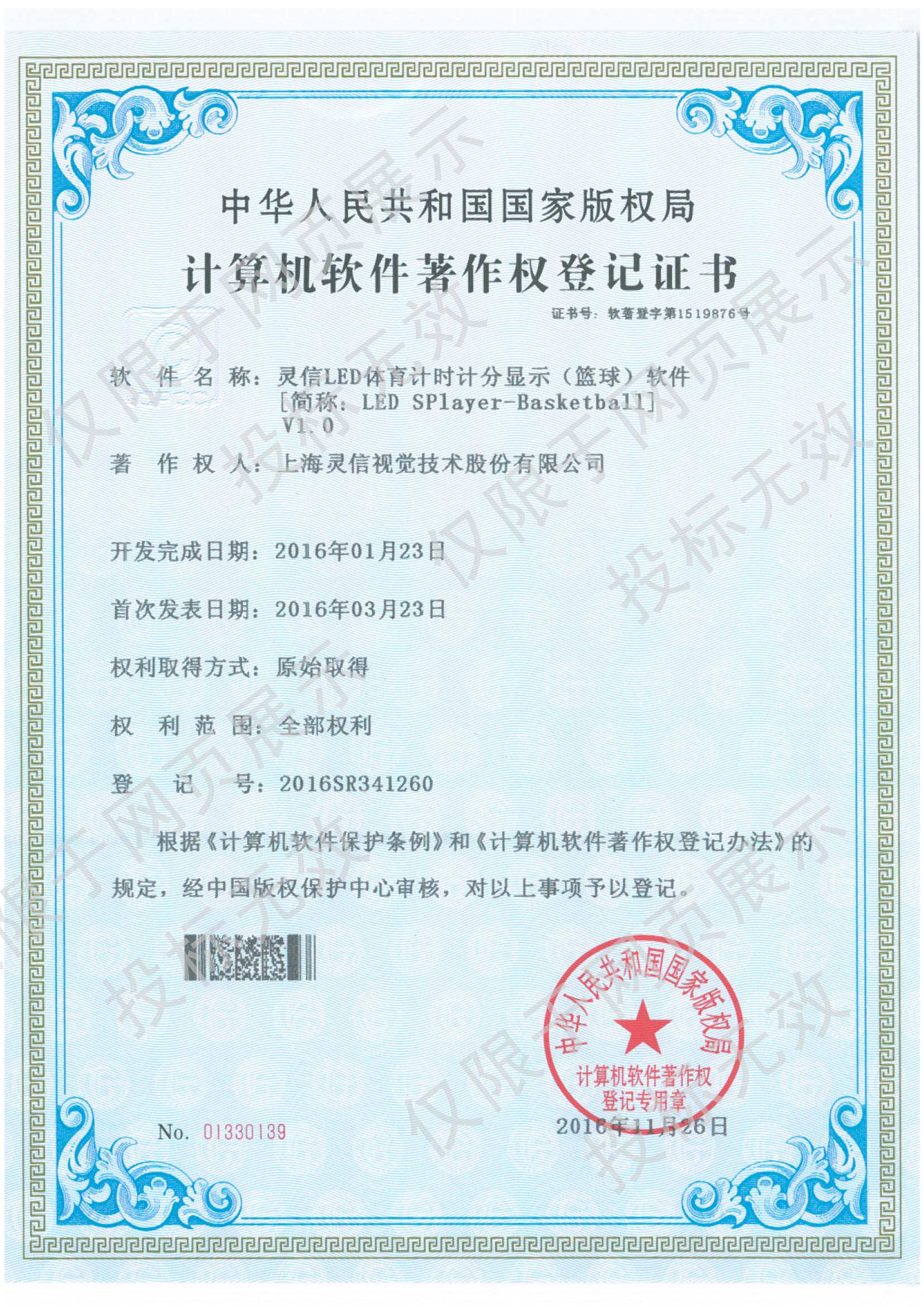 • 計算機軟件著作權登記證書
